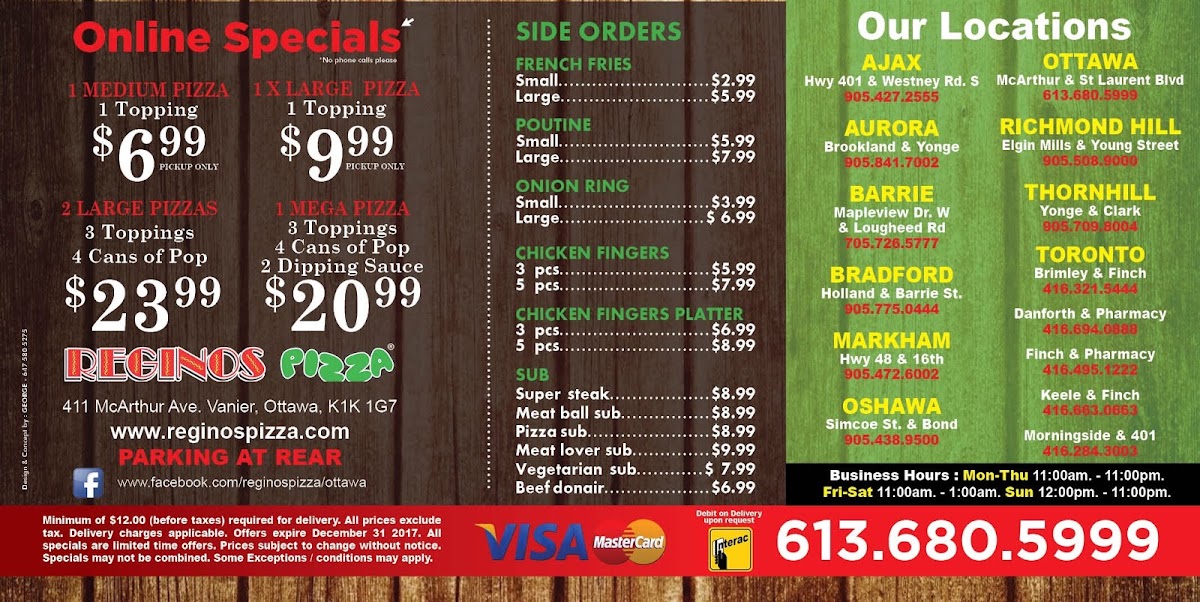With a welcoming staff and swift delivery, Reginos ensures a delightful dining experience. The menu features a variety of options that cater to both traditional and adventurous pizza lovers, while also inviting suggestions from patrons for exciting additions like plant-based toppings. Prices are extremely reasonable for the sizable portions, ensuring great value for money. Whether you're a meat lover or a discerning pizza aficionado, Reginos Pizza/Vanier is set to satisfy your cravings and become your go-to spot in the city.